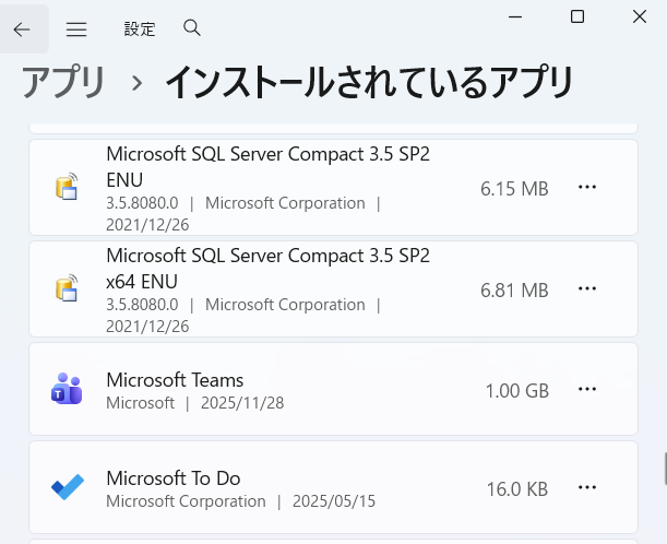 「アプリ」⇒「インストールされているアプリ」を開きます